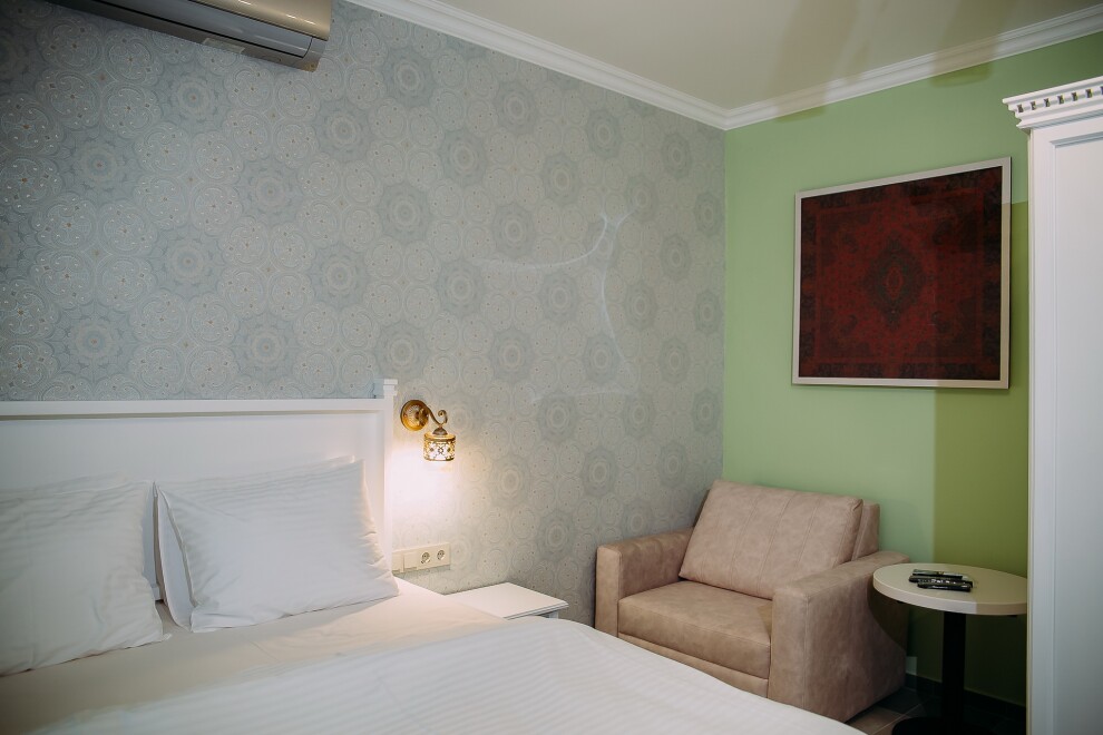 Здание мини отеля "Марфуга" имеет два этажа с восемью уникальными номерами, каждый из которых сделан в своей восточной тематике.