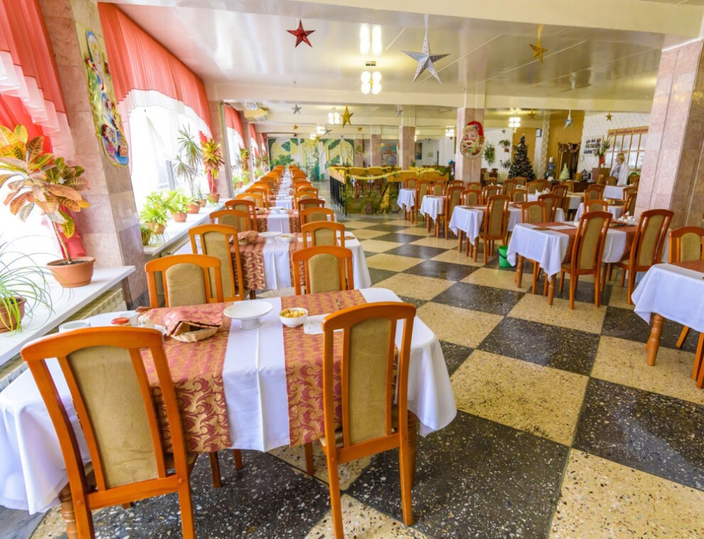 В санатории предлагают 4-х разовое диетическое питание. Меню составляется по пятнадцати диетам. Вас сможет проконсультировать врач-диетолог и подобрать индивидуальную диету. Действует система "меню-заказ".