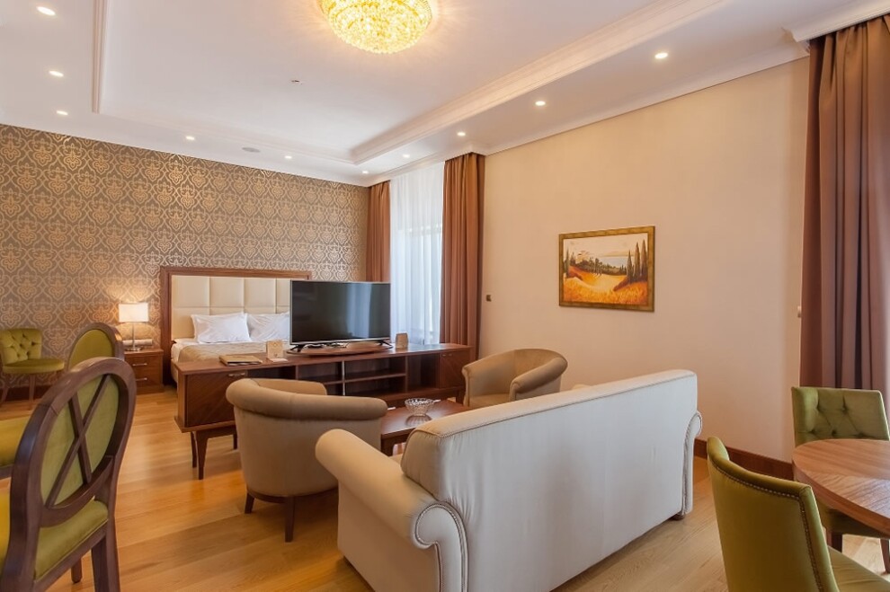 • Президентский сюит включает гостиную, рабочий кабинет и спальню.