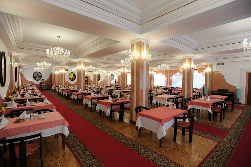 В роскошном и одновременно уютном обеденном зале организовано рациональное питание на основе принципов лечебно-диетического и общественного питания с использованием 5-ти вариантов стандартных диет. Режим питания четырехразовый, по показаниям назначается 5-6 разовое питание. Питание организовано по полуресторанной системе с предварительным заказом блюд на следующие дни.
