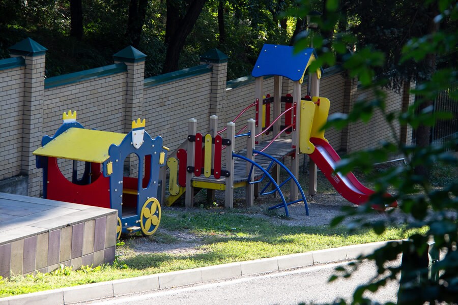 Территория «Галереи Палас» невероятно живописна, ежедневные прогулки уже могут стать развлекательным мероприятием. На территории расположены беседки, живописный фонтан, детская площадка, смотровая площадка, с которой открывается невероятный вид на гору Машук.