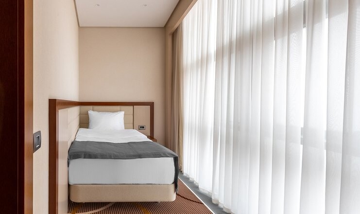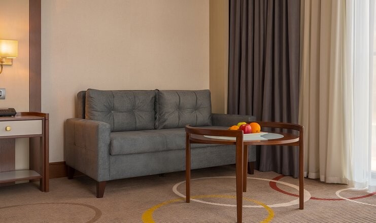 Номера Джуниор оснащены двумя односпальными или одной двуспальной кроватью, а также диваном или раскладным креслом.