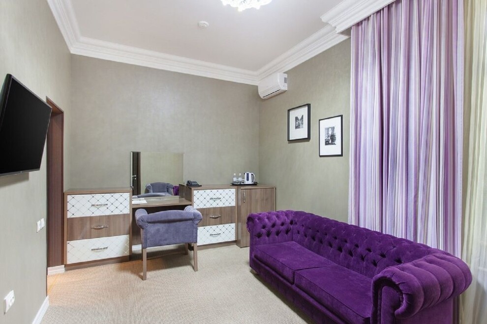 - 2-местный 3-х комнатный номер Сюит 75 кв (2 плазменных телевизора, кондиционер, холодильник, телефон, чайный набор, сейф, ванна, биде, халат, тапочки, сейф);