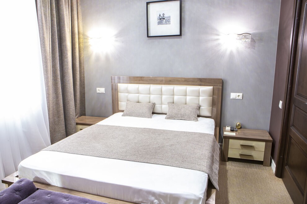 - 2-местный Люкс с просторными комнатами 50-65 кв (2 плазменных телевизора, кондиционер, холодильник, телефон, чайный набор, сейф, ванна, биде, халат, тапочки, сейф);